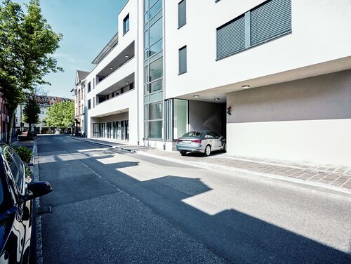 WÖHR a installé un total de 424 places de stationnement sur 12 niveaux de parking en surface sur le système de stationnement entièrement automatique Multiparker 750.