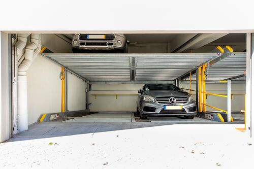 In this model, the access to the lower level is at a 14 percent slope. The slope significantly reduces the installation height compared to the Parklift 450 model. Thanks to a maximum platform load of 2,600 kg, the systems also lift heavy SUVs without any problems.