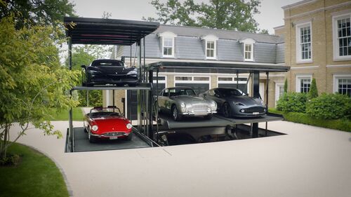 The solution? The Parklift 462! The all-black retractable garage offers two underground parking levels which, when lowered, allows all Ferraris and Aston Martins to disappear underground!
