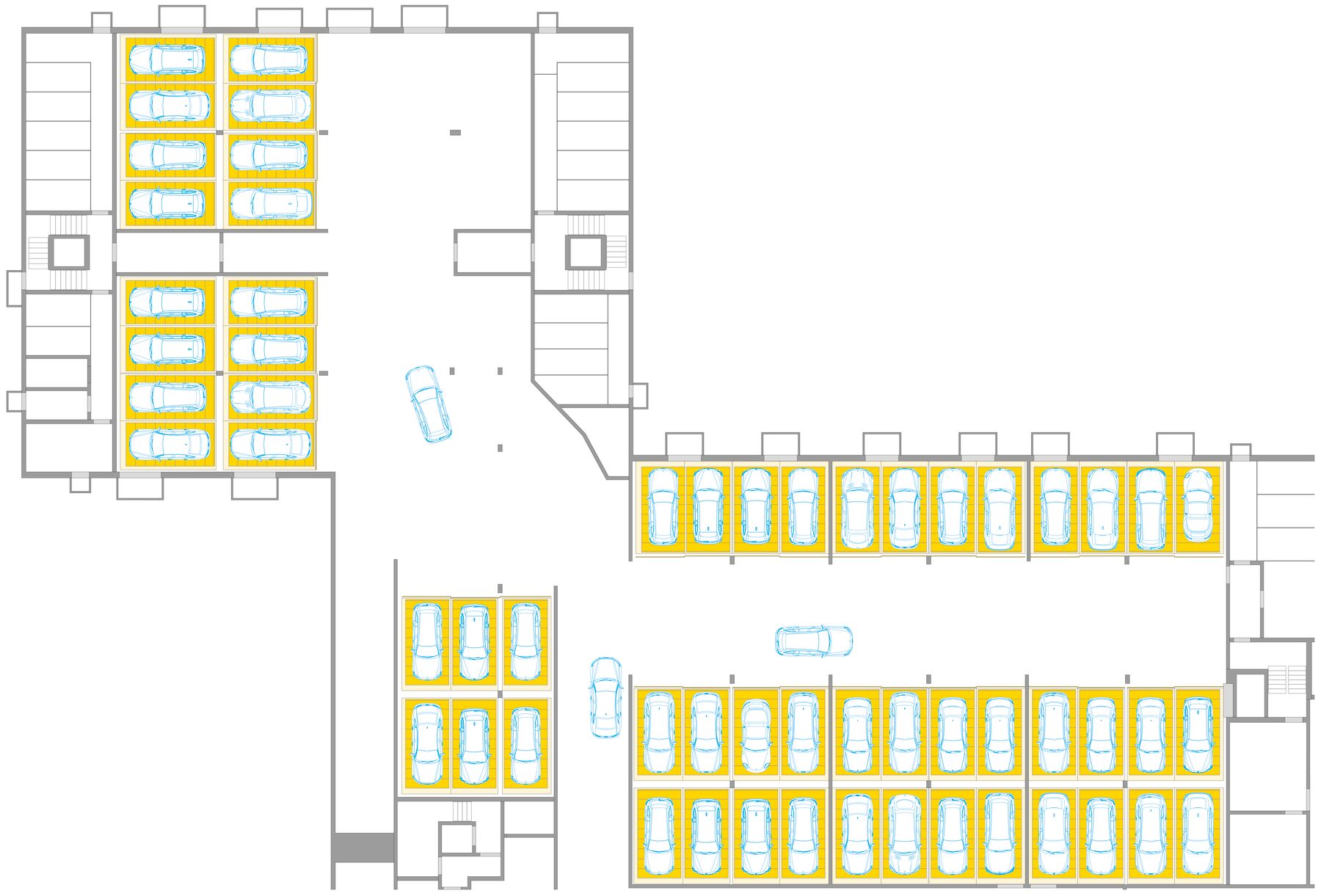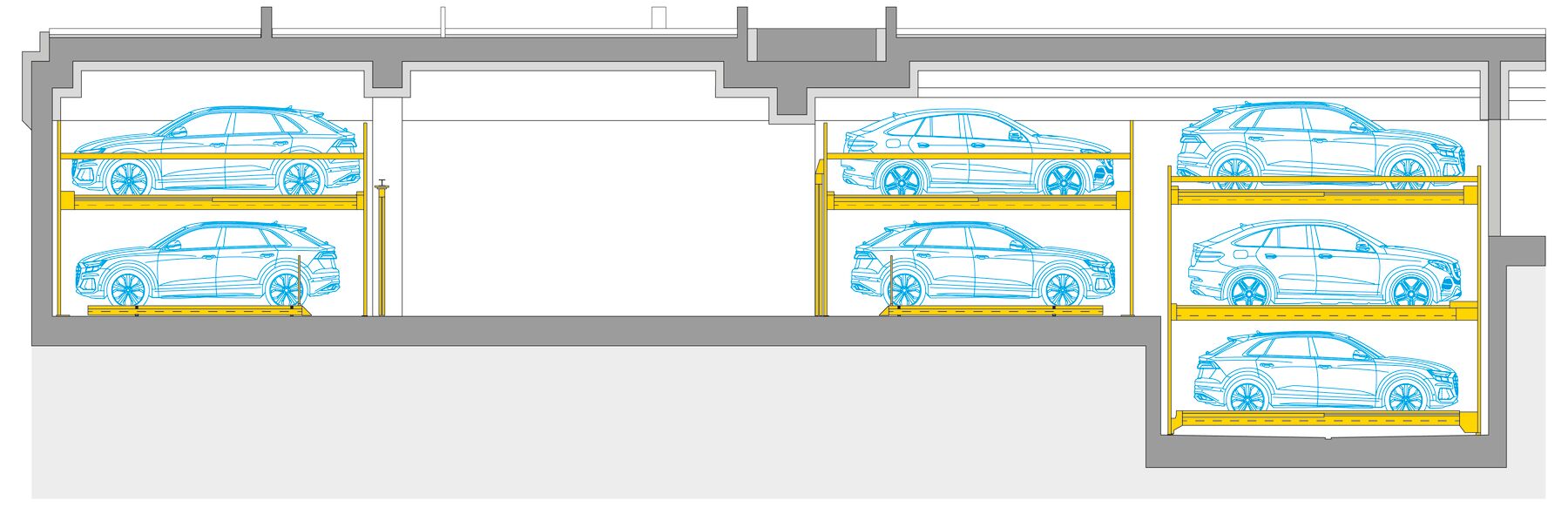 Sur les 171 places de stationnement disponibles dans le quartier, 124 sont équipées des systèmes WÖHR Combilift 543 et 552, peu encombrants. Réparties sur 15 installations de différentes tailles, elles offrent aux résidents des places de stationnement confortables et efficaces, parfaitement adaptées aux conditions architecturales et aux besoins du quartier.