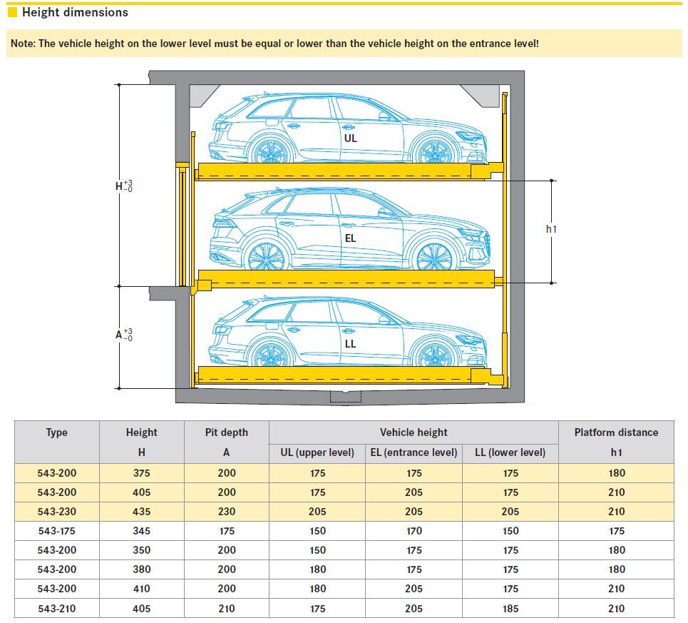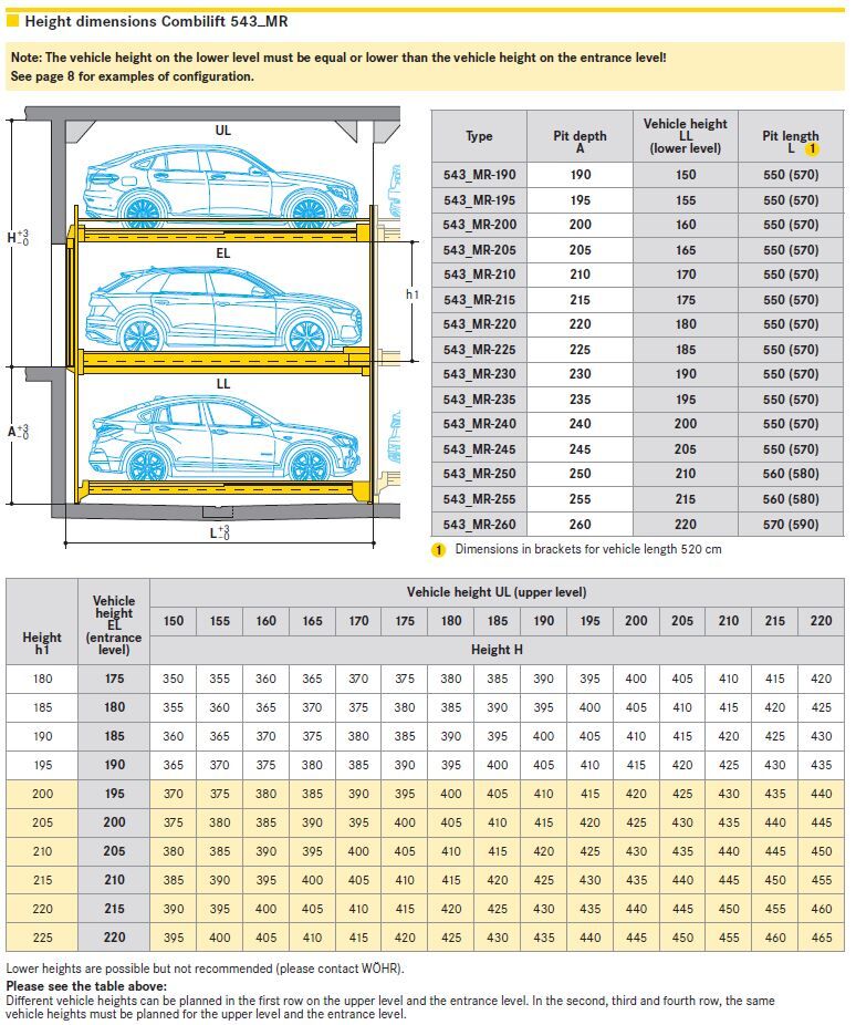 Alle nieuwe Combiliften zijn uiterst flexibel, omdat we elke 5 cm een nieuwe hoogte kunnen creëren om voertuigen met een hoogte van 150 cm tot 220 cm te parkeren.