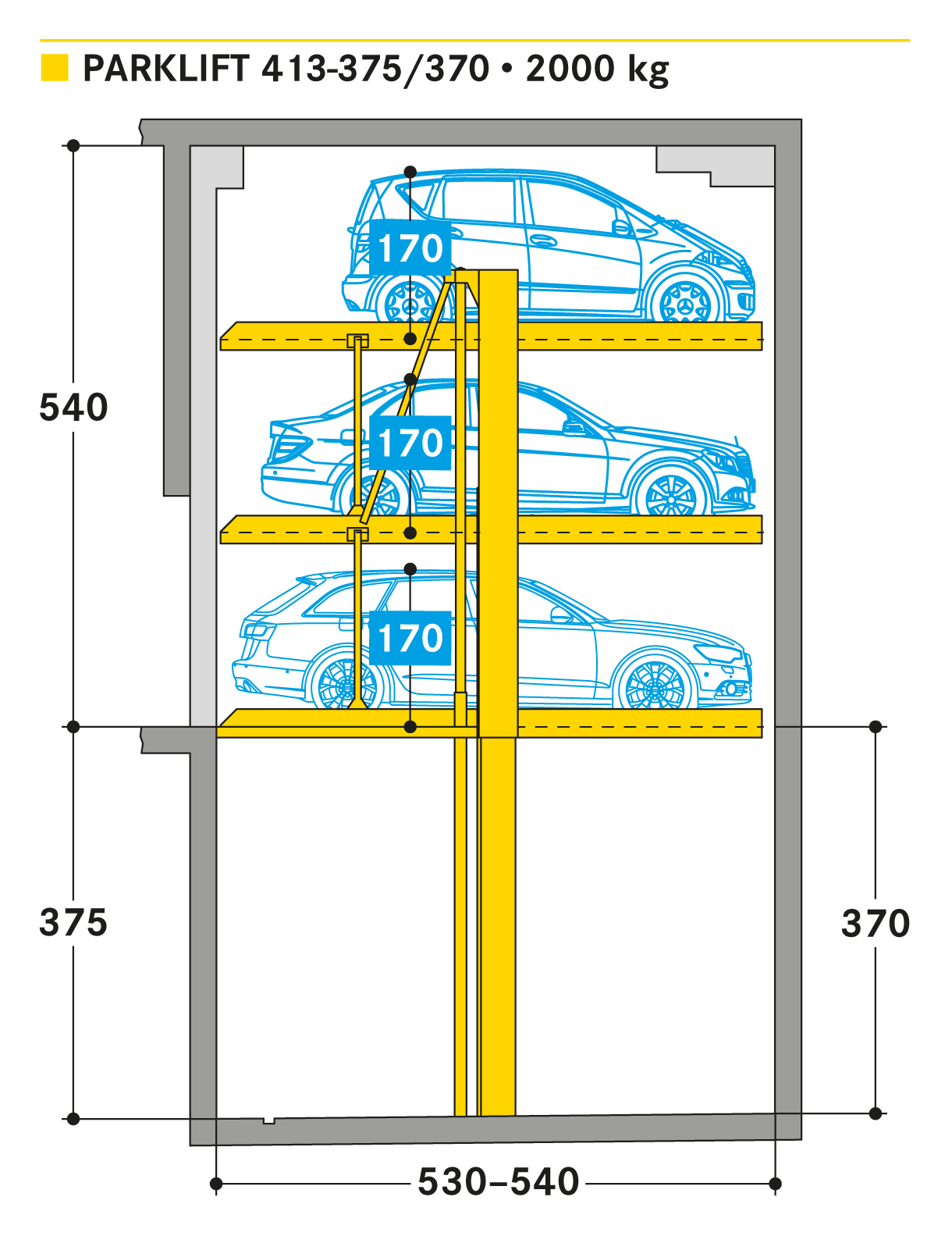 Met Parklift 413 worden drie parkeerplaatsen op één verdieping opgebouwd, onafhankelijk van elkaar en kostenbesparend.