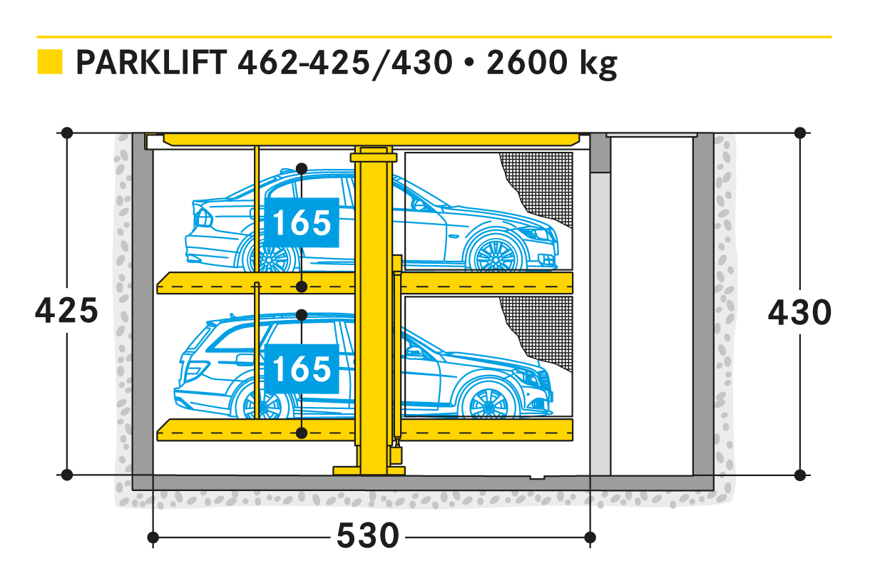 De onzichtbare Parklift 462 wordt in een put neergelaten, terwijl de horizontale platforms onder de grond zichtbaar worden bij het in- en uitstappen. Het bovenste platform kan met verschillende bekledingen in het omringende oppervlak geïntegreerd worden. De Parklift 462 is geschikt voor binnenplaatsen, toegangszones of retrofitprojecten. Enkele eenheid voor 2 wagens en dubbele eenheid voor 4 wagens.