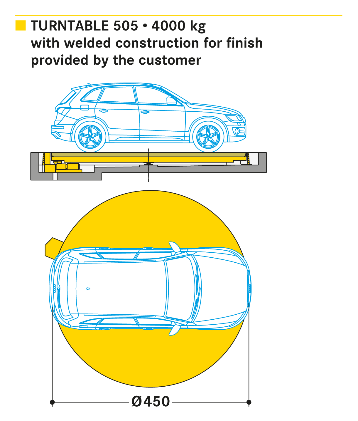 Op alle plaatsen waar alleen vooruit kan gereden worden of waar de plaats voor parkeermanoeuvres beperkt is, wordt het voertuig met de Turntable 505 eenvoudig in de gewenste parkeerpositie gedraaid. Draaiplatformrotatie is de ideale oplossing in geval van smalle en beperkte in- en uitgangen van parkeerplaatsen.