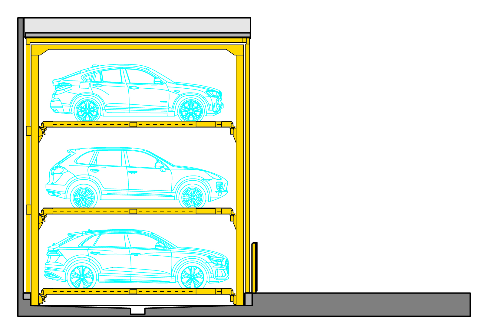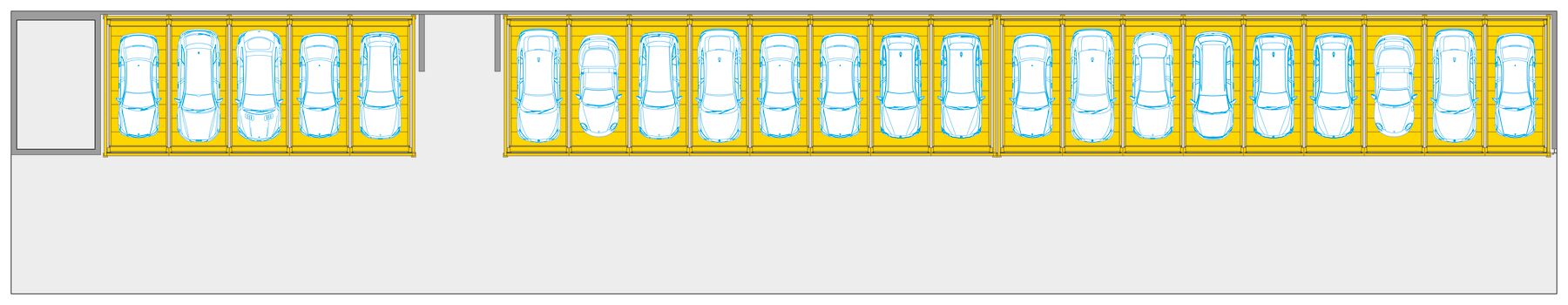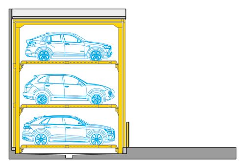 A particular highlight is the WÖHR Combiparker 560, which provides 50 air-conditioned glass boxes for collector's vehicles – accessible around the clock and perfectly integrated into the architectural concept. The Combiparker 560 offers an impressive overview of the various vehicles on three levels, which are further highlighted by special lighting in the boxes. All parking spaces have also been equipped with electric charging stations to enable electric vehicles to be charged inside the glass box.